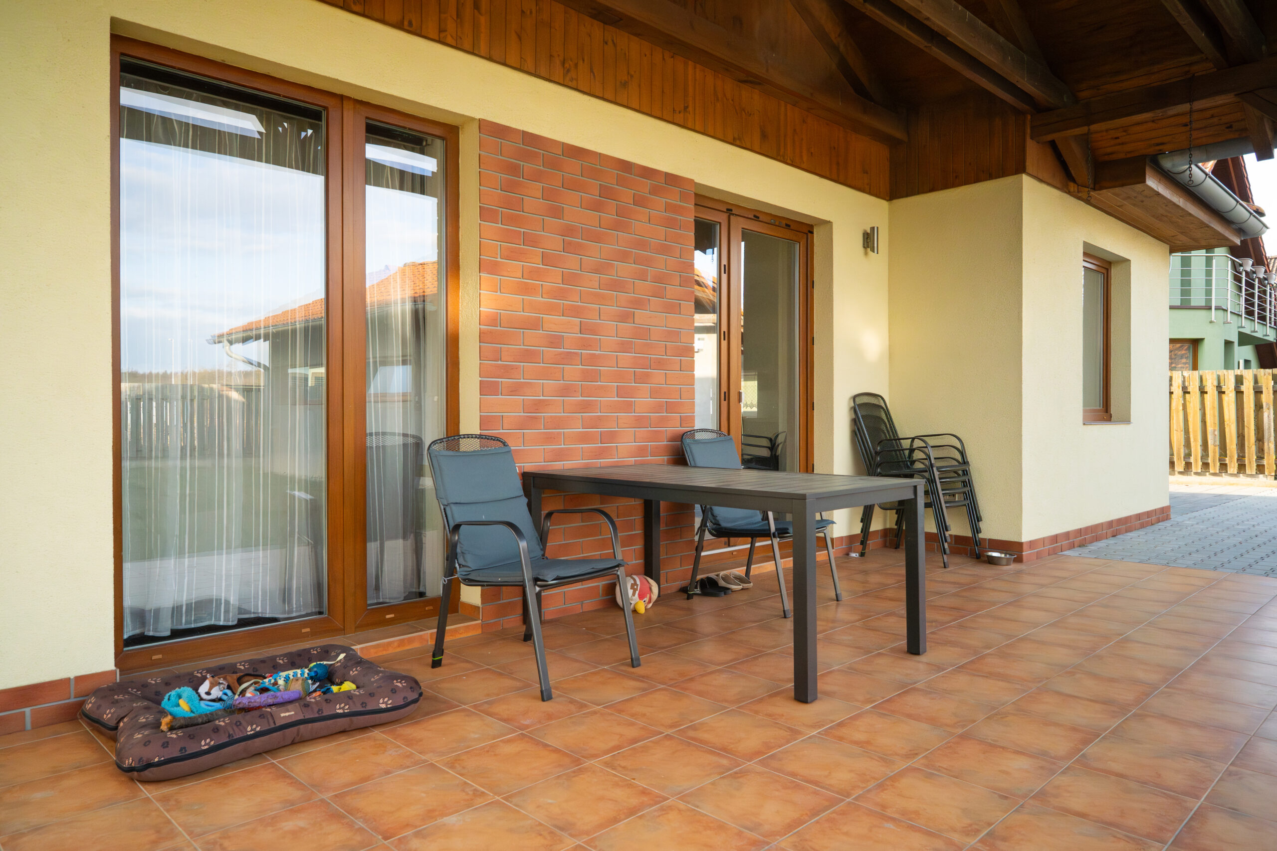 Velkým benefitem je udržovaná zahrada, která poskytuje dostatek soukromí a prostoru pro odpočinek i aktivní trávení volného času. Krytá terasa přímo navazuje na obytnou část domu a nabízí příjemné zázemí pro posezení za každého počasí. Praktickým bonusem je také garáž a dostatek místa pro parkování.